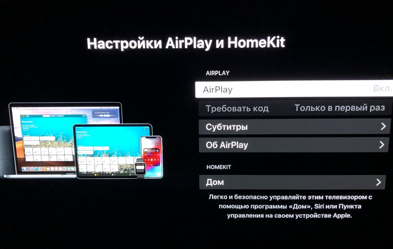 Встроенный AirPlay 2 - работает отлично, музыка, видео все показывает быстро и без задержек. Телевизор можно добавить в HomeKit - умный дом от Apple, доступно включение/выключение, переключение входов с телефона.