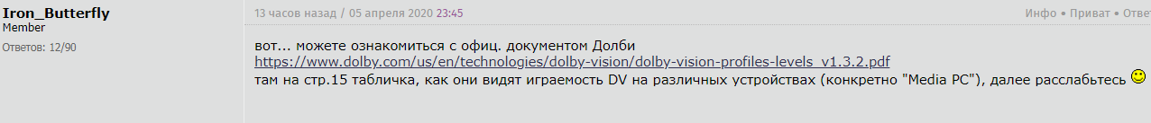 Не поддерживается двухслойный DV 7-го профиля из m2ts-контейнера ничем, кроме как чипами, предназначенными для UHDBD-проигрывателей с приводами. Поэтому АПК внутреннего плеера ТВ отрабатывет лишь с основным HDR-потоком, как это и предусмотрено принципом обратной совместимости для форматов HDR. Тут narpol @ Просмотр контента в формате Dolby Vision все, из чего можно увидеть DV c помощью внутреннего плеера ТВ.