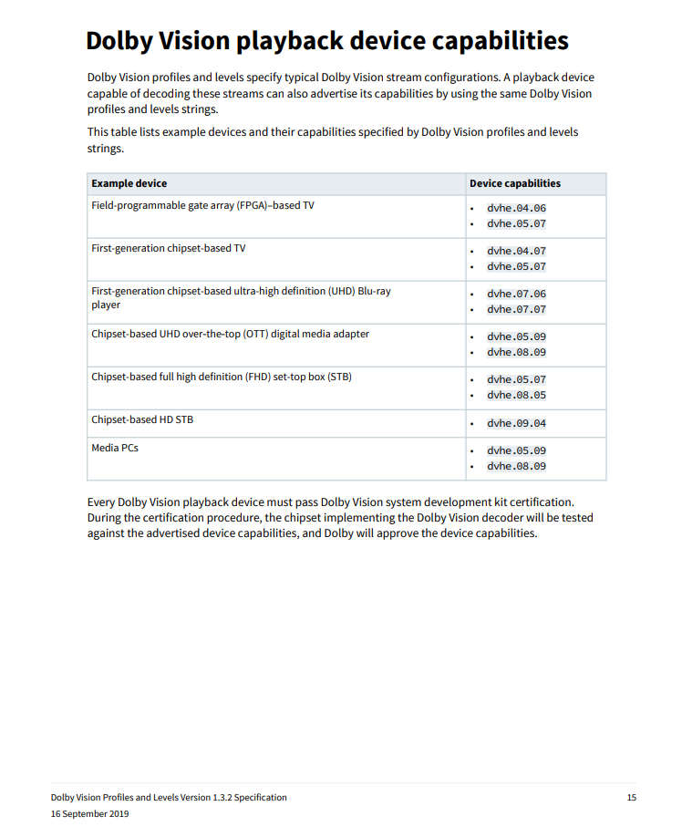 Во время процедуры сертификации будет протестирован чипсет, реализующий декодер Dolby Vision.