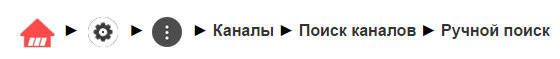 - Выберите Расширенные настройки -> Каналы -> Поиск каналов -> Ручной поиск .