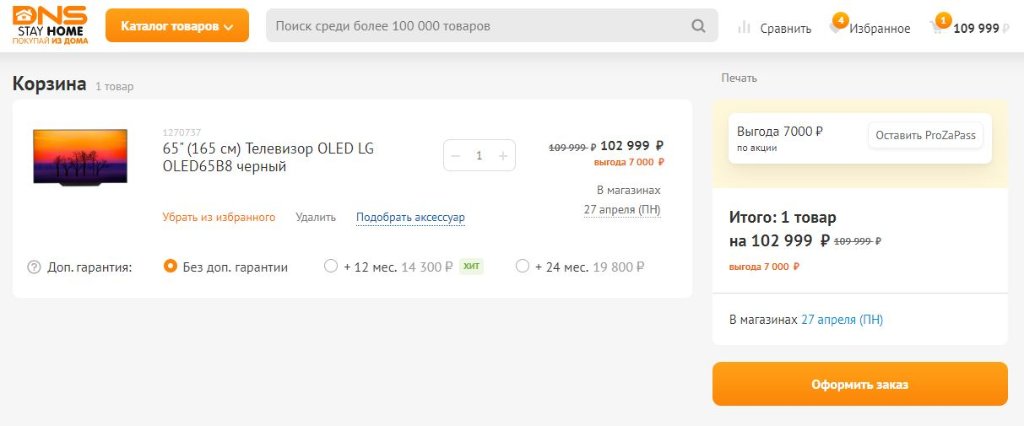 Так же LG OLED65B8 за 102999р в ДНС с доставкой на дом за 1 рубль