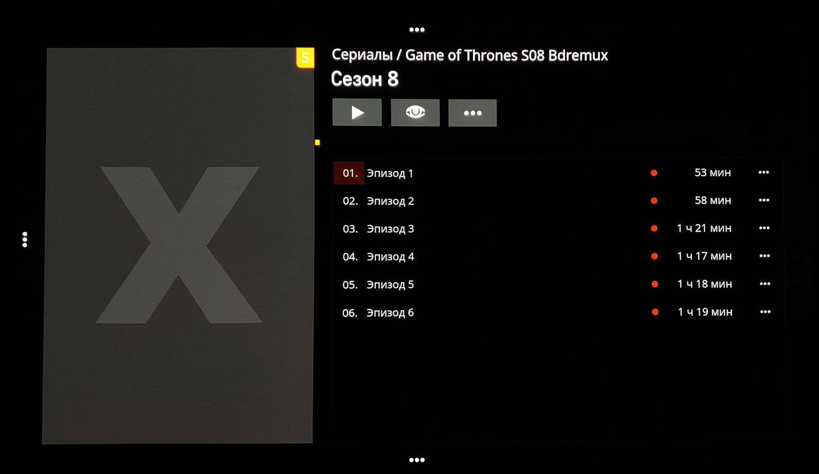 Нашел еще для себя минусы Emby в работе с сериалами, у XPlay при входе в сезон названия серий отображаются интуитивно понятно, с отметкой о просмотре и на каком времени остановился.