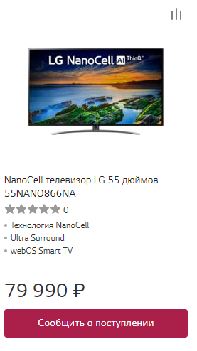 По данным сервиса Яндекс.Маркет в настоящий момент телевизоры серии LG NANO86 можно найти в интернет-магазинах Вашего региона по следующей стоимости (данные обновляются автоматически):