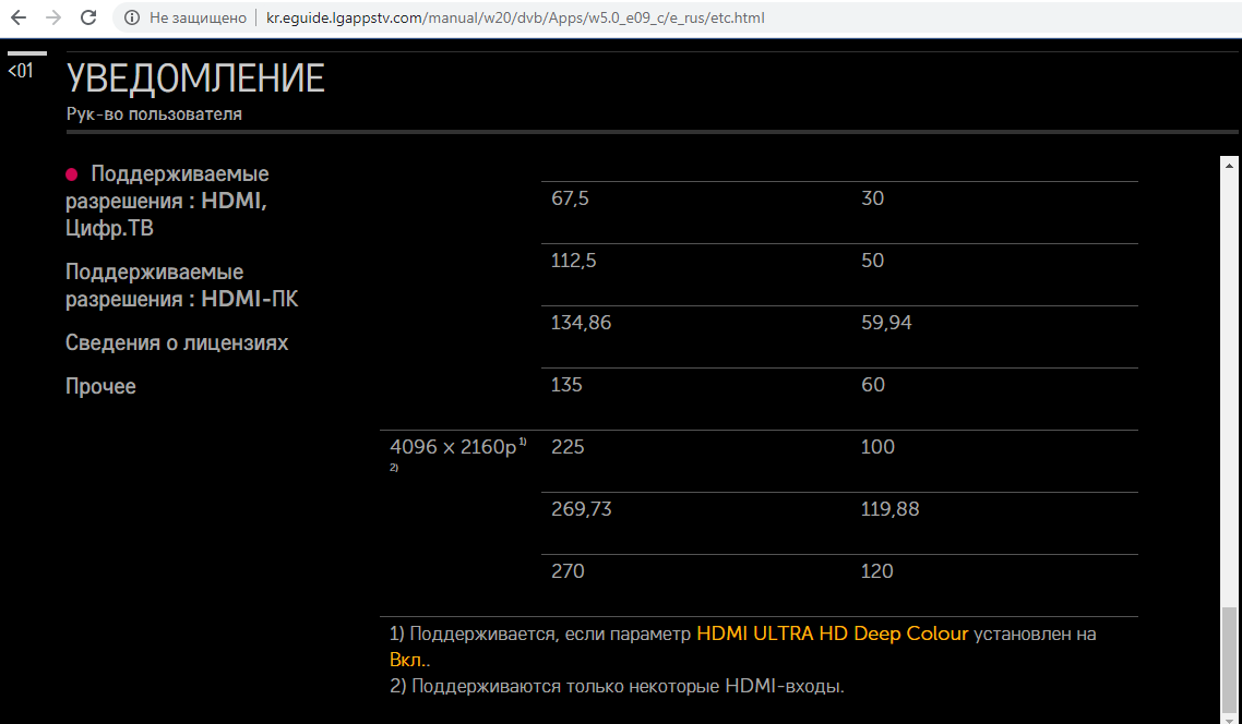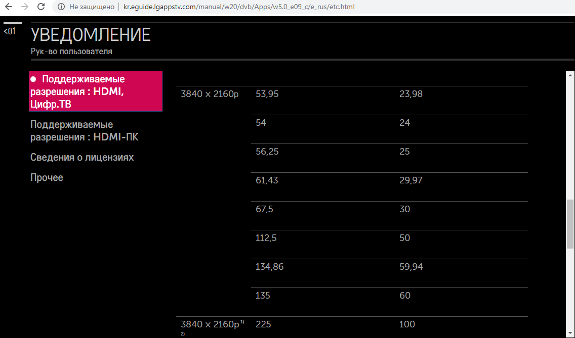 Возвращаясь к поднимавшемуся тут narpol @ Подключение телевизора в режиме 4K@120 Гц обсуждению, теперь для ТВ 2020 г. в. в Руководстве пользователя, размещенном на странице поддержки 65CX на сайте производителя все уже выглядит более оптимистично