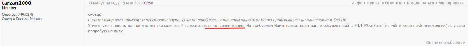 Так что ждем ответа, что понимается под "более менее", т.к., как уже писал ранее, тоже не наблюдал никакой с HDD, самой собой, буферизации и фризов (тут вообще все нормально в плане кодирования по битрейту), а вот "микропередергивания" заметил далеко не с первого раза (но это уже специфика сочетания именно DV + HFR, поставившего для процессора не перевариваемую задачу).