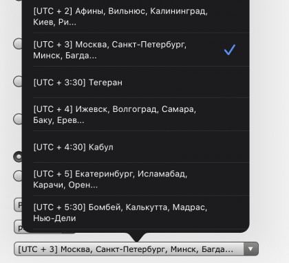 UTC +3 это Москва, Санкт-Петербург