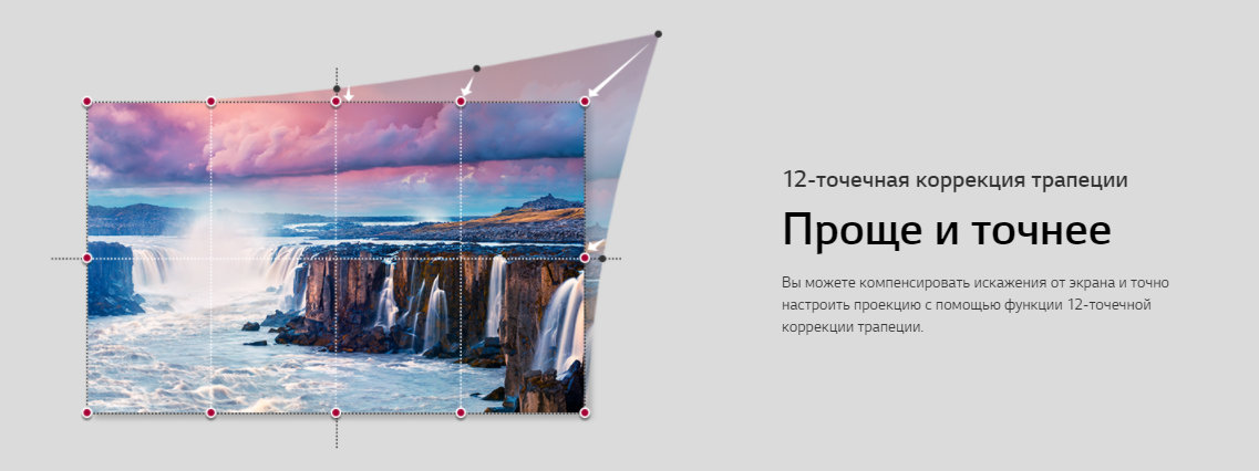 Также доступна коррекция изображения при помощи встроенной функции регулировки трапеции по 12 точкам.