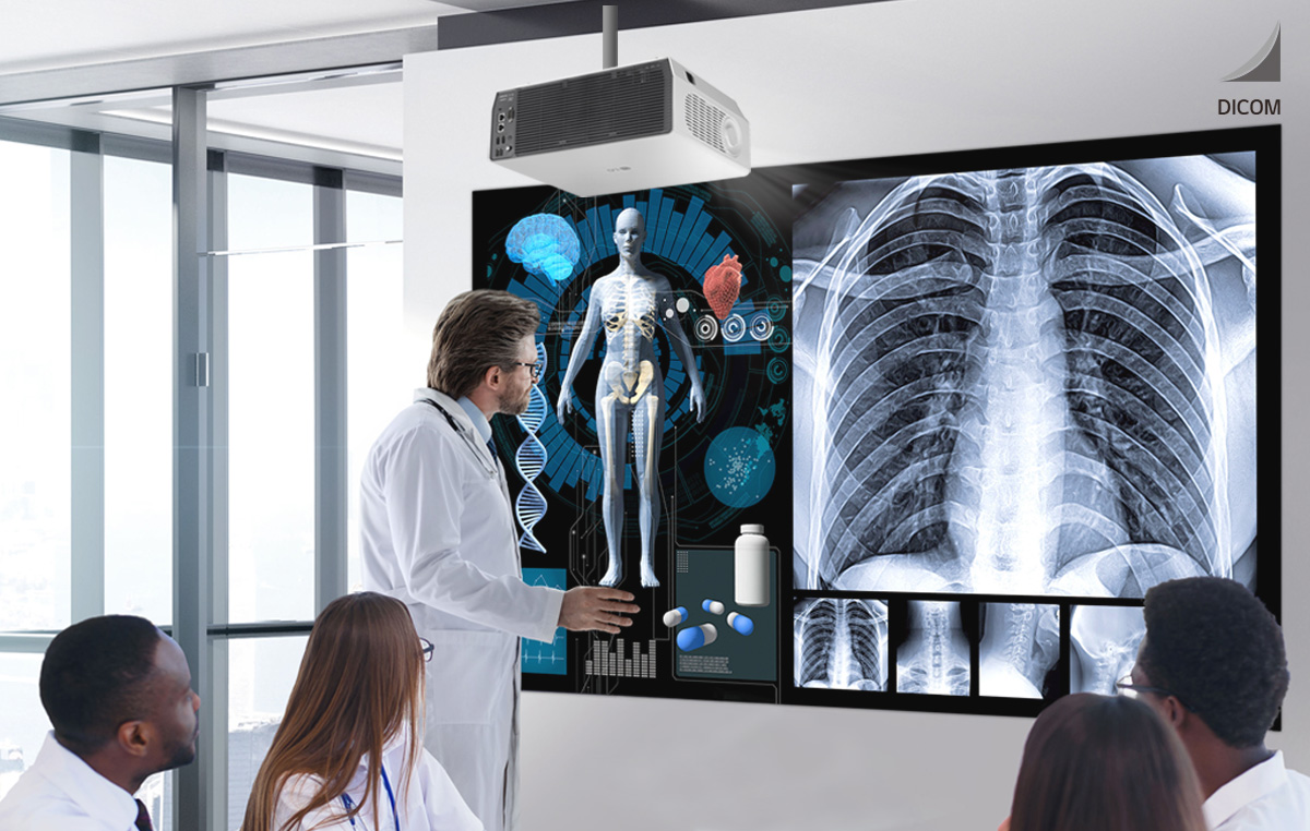 Для просмотра медицинских изображений на большом экране устройство поддерживает стандарт DICOM для правильного отображения оттенков серого.