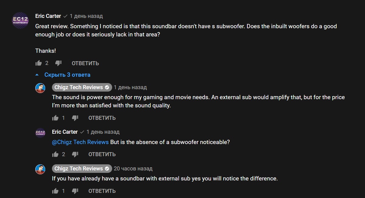 Это виртуализация, не имеющая отношения к "правильности" исходного звука. Но на вкус и цвет все фломастеры разные.Mr_Сlunky писал(а):при задействовании некоторых режимов звучания (к промеру «Кино») звук подаётся на фронтальные и одновременно на верхние динамики панели даже при отсутствии 7.1-канального звука. Это очень правильное решение!