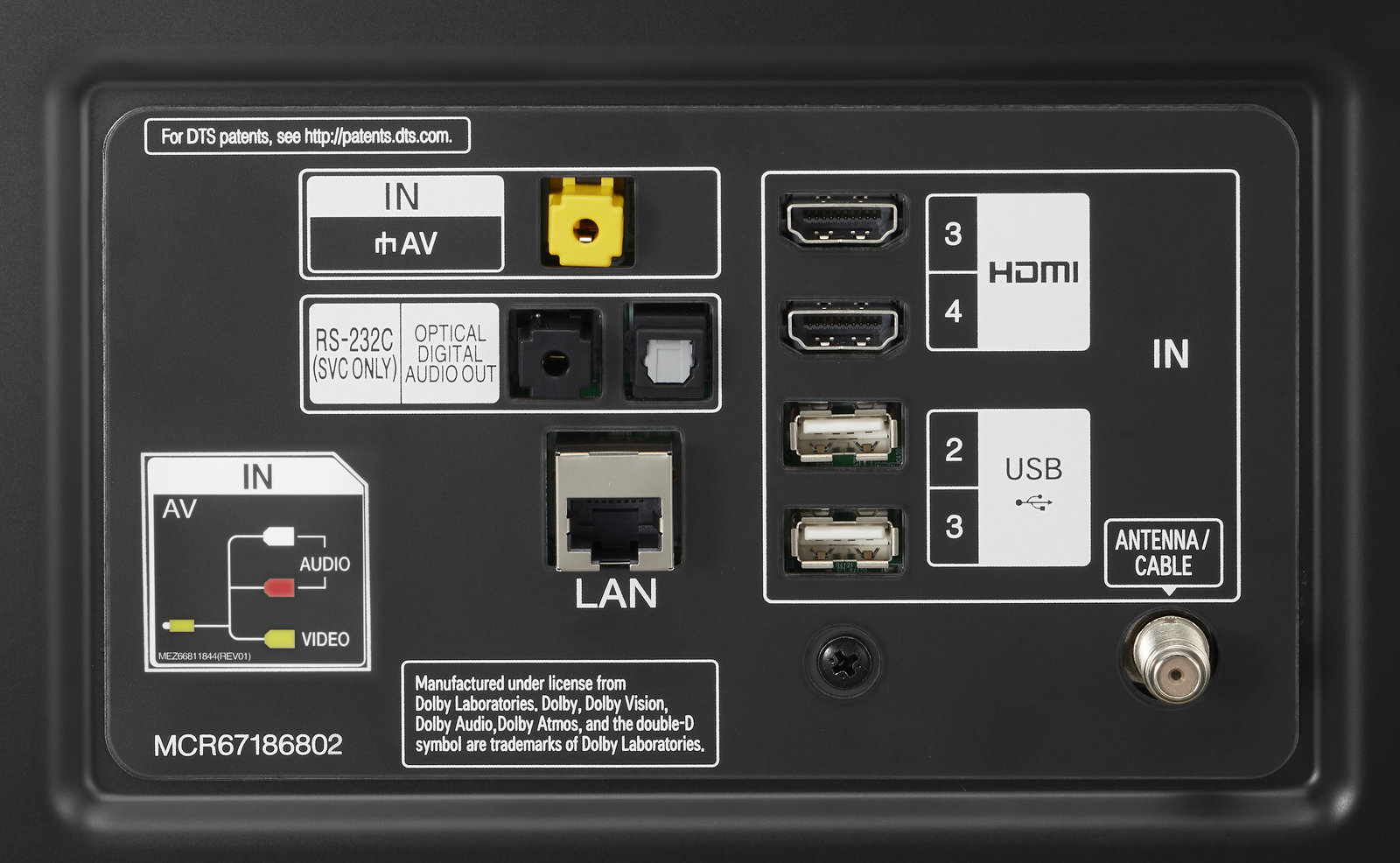 Задняя панель телевизоров линейки UN8500 оснащена двумя входами HDMI v.2.0, двумя разъемами USB 2.0, компонентным AV-входом (только в версии для США), 2 антенными входами (для спутникового и кабельного/эфирного ТВ) и одним портом LAN (со скоростью 100 Мбит/сек). Что касается аудио, то на этой же панели расположен только оптический аудиовыход.