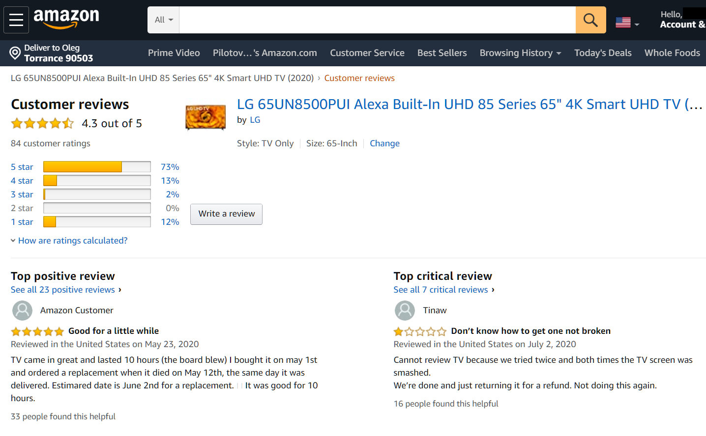 Отзывы пользователей о LG 65UN8500, 75UN8500, 82UN8500 и 86UN8500: