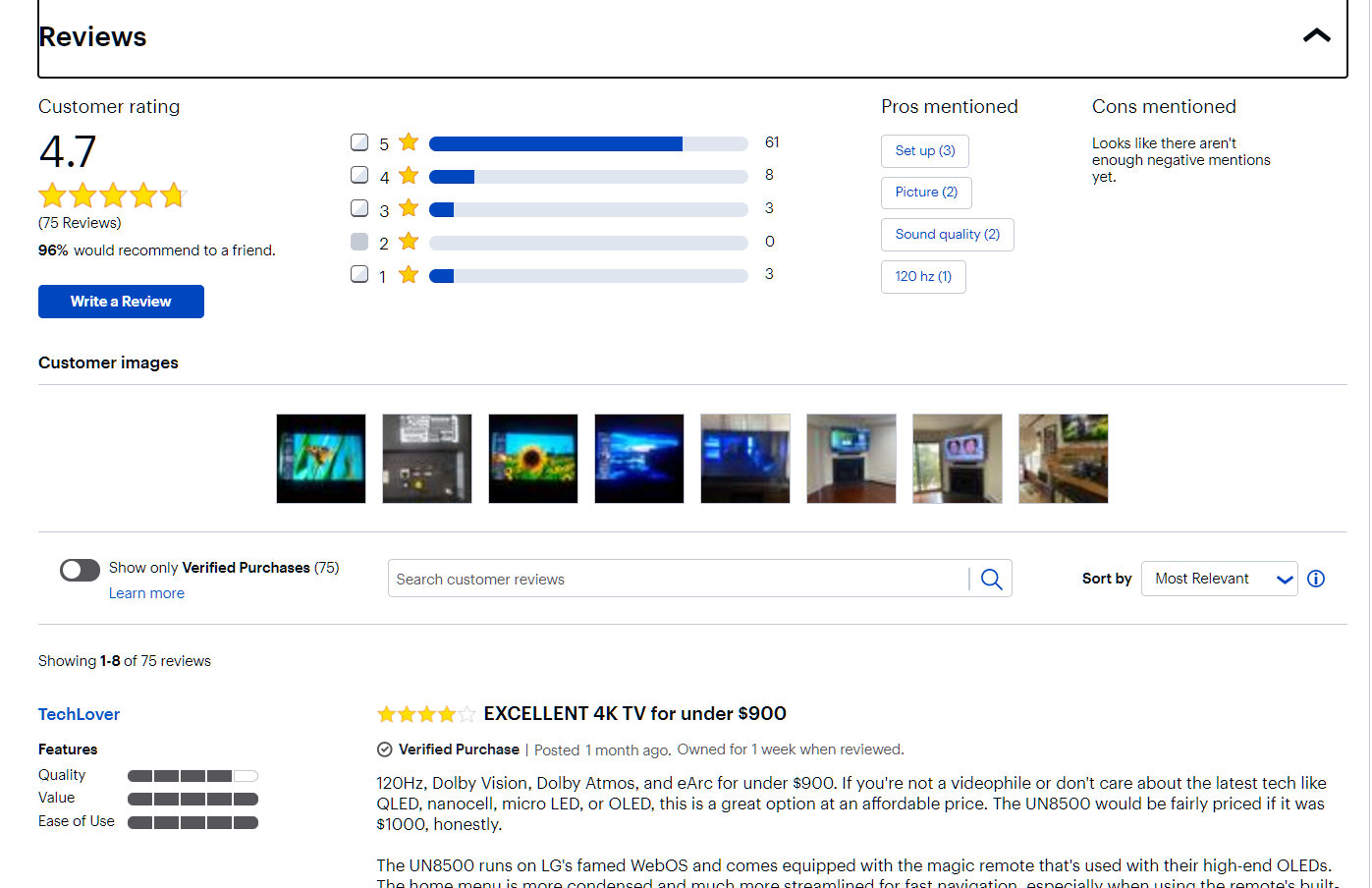 В США продается 65 дюймовая версия UN8500 (артикул 65UN8500PUI), так вот на амазоне и бестбае есть много отзывов от реальных покупателей по ней. В основном пишут, что за эти деньги данная модель очень хороший выбор: