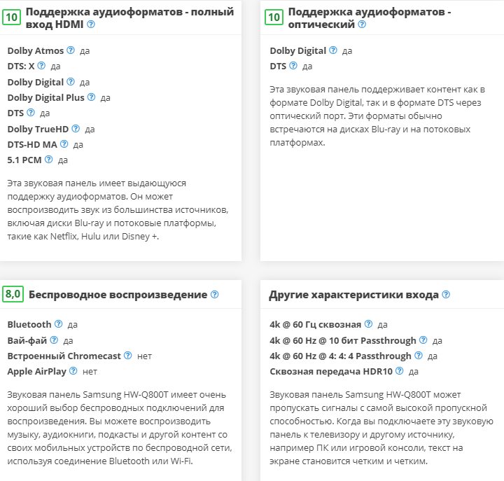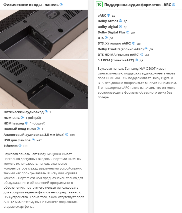 Звуковая панель Samsung HW-Q800T представляет собой установку 3.1.2 из линейки Samsung 2020 года. Эта хорошо продуманная и элегантная установка имеет два громкоговорителя, встроенных в стойку, и отдельный беспроводной сабвуфер. Он поставляется с технологией Samsung Acoustic Beam, которая использует громкоговорители на панели управления, чтобы обеспечить более захватывающее впечатление от прослушивания. Его функция Q-Symphony также позволяет синхронизировать динамики телевизора Samsung QLED с панелью для получения более кинематографического звука, хотя в настоящее время мы не тестируем это. Поддержка голосового помощника Amazon Alexa интегрирована в его дизайн, и вы даже можете выключить микрофон, когда он не используется. В целом, его воспроизведение звука очень нейтральное и хорошо сбалансированное, поэтому оно подходит для различного аудиоконтента. Хотя он может воспроизводить объемный звук и контент Dolby Atmos, к сожалению, он не обеспечивает наиболее захватывающего прослушивания. С другой стороны, эта панель имеет множество вариантов подключения и функций настройки звука.