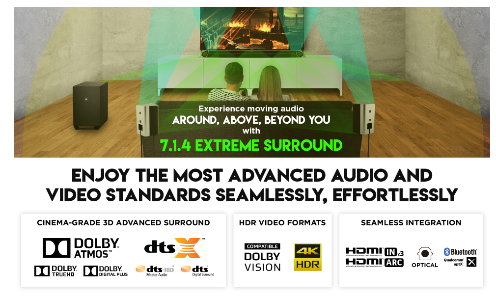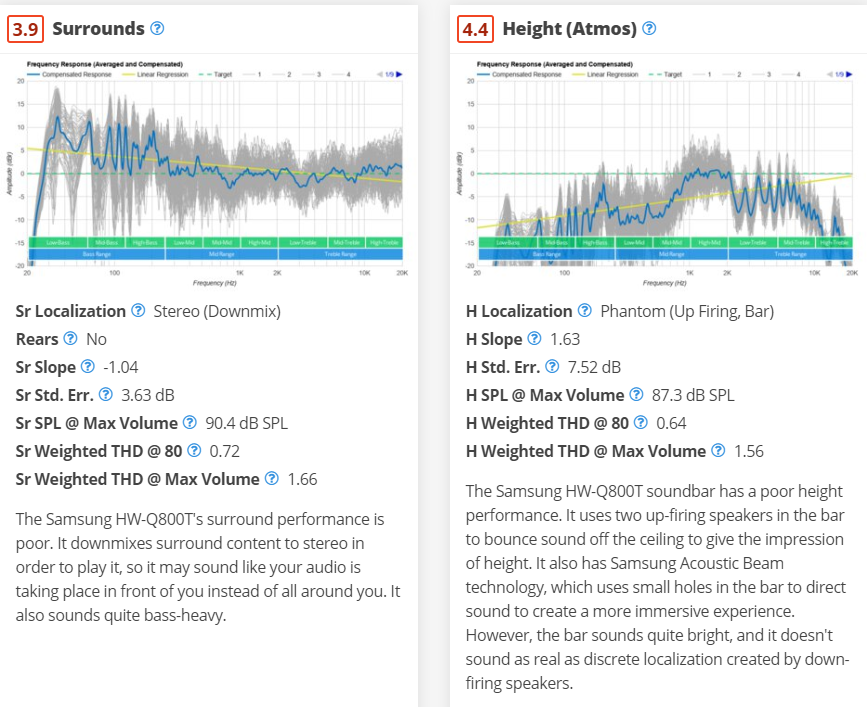 Сначала об этой части. Для начала - т.к. просто эксперименты, то прямо из коробки разместил "отстегушки" прямо наверх излучателей объема в своей проводной системе ДК и послушал без калибровки. В построении именно окружающего звука ничуть не проигрывает такой вариант, с панорамамой по фронту не существенно, но все же хуже - сказывается сгруппированность излучателей левого и правого фронтальных каналов, добавка Атмоса (на соответствующем звуке) безусловно превносит большой плюс, но это явно выражается лишь на тестовом контенте, в Варкрафте Атмос-эффекты как-то не произвели большого впечатления, хотя были заметны/присутствовали. Но, самое главное (о чем все же говорил неоднократно) - сам по себе по качеству HD-звук (в плане детальности по составляющим) лучше звучит на более массивных и габаритных колонках проводной системы ДК, чем из небольших излучателей/в небольшом корпусе саундбара/отстегушках (вероятно в данном аспекте соответствующие LG/Samsung-варианты будут предпочтительней за счет массивности добавочных систем).