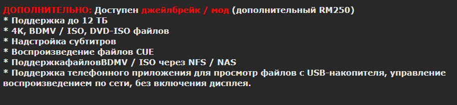 На новые модели уже есть цены и, как я уже сказал, они будут дороже: - M9201 -> клон Oppo 203. Новая материнская плата, HDMI IN, CEC и коаксиал: цена с AVPasion составляет 369 долларов (но если нас более 100 человек, цена снижается до 339 долларов). - M9203 -> Клон Oppo 203. Новая материнская плата, HDMI IN, CEC, коаксиальный и VFD-экран, тороидальное питание - не знаю: цена с AVPasion 530 долларов. - M9205 -> Клон Oppo 205. Новая материнская плата, HDMI IN, CEC, коаксиальный, VFD-экран, еще один USB 3.0, тороидальный блок питания, Wifi и RS232-C: цена с AVPasion 630 долларов. Прилагаю таблицу характеристик и две фотографии. Если вы покупаете его самостоятельно, цена каждой модели будет примерно на 100 долларов дороже.
