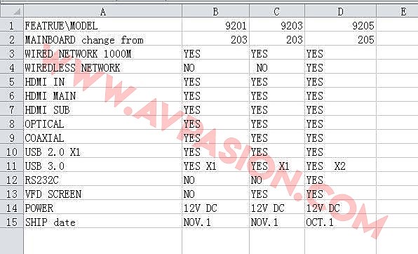 - M9201 -> Oppo 203 clone.New motherboard, HDMI IN, CEC and coaxial: price with AVPasion of $369 (but If we are 100+ people, the price down to 339$).