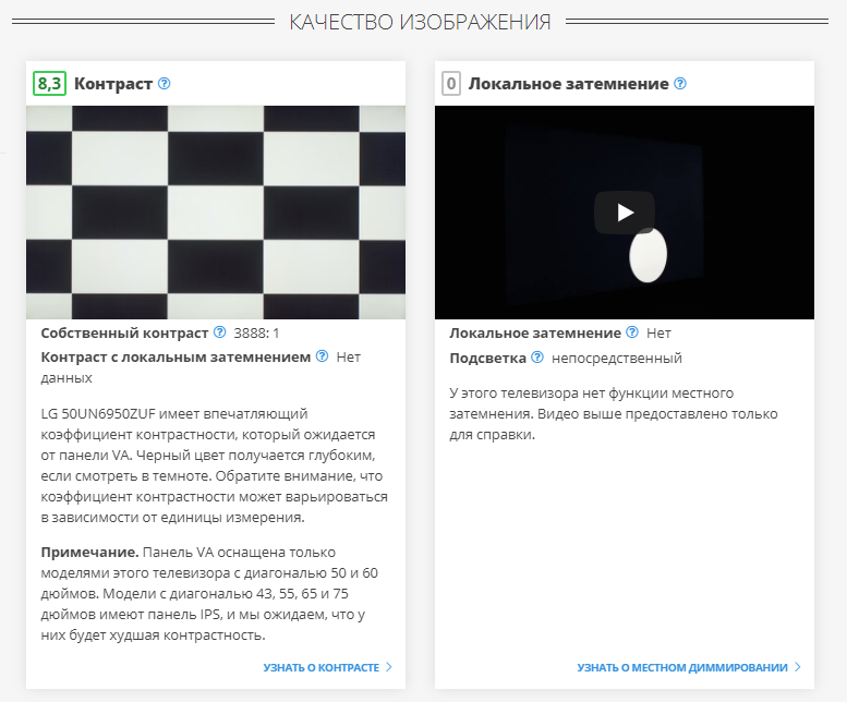 В модели UN7100 (за исключением вариантов с диагональю 60" и 70", в которых используется матрица VA) применена IPS матрица. Одно из ее достоинств - широкий угол обзора. Достойное качество изображения будет обеспечено, несмотря на то, под каким углом и с какого расстояния вы будете смотреть телевизор. При этом UN7100 оснащен задней подсветкой, из-за чего толщина телевизора составляет до 88 (!) мм в зависимости от диагонали. Также из-за подсветки типа Direct модель UN7100 не поддерживает технологию локального затемнения светодиодной подсветки матрицы (см. topic5050.html).
