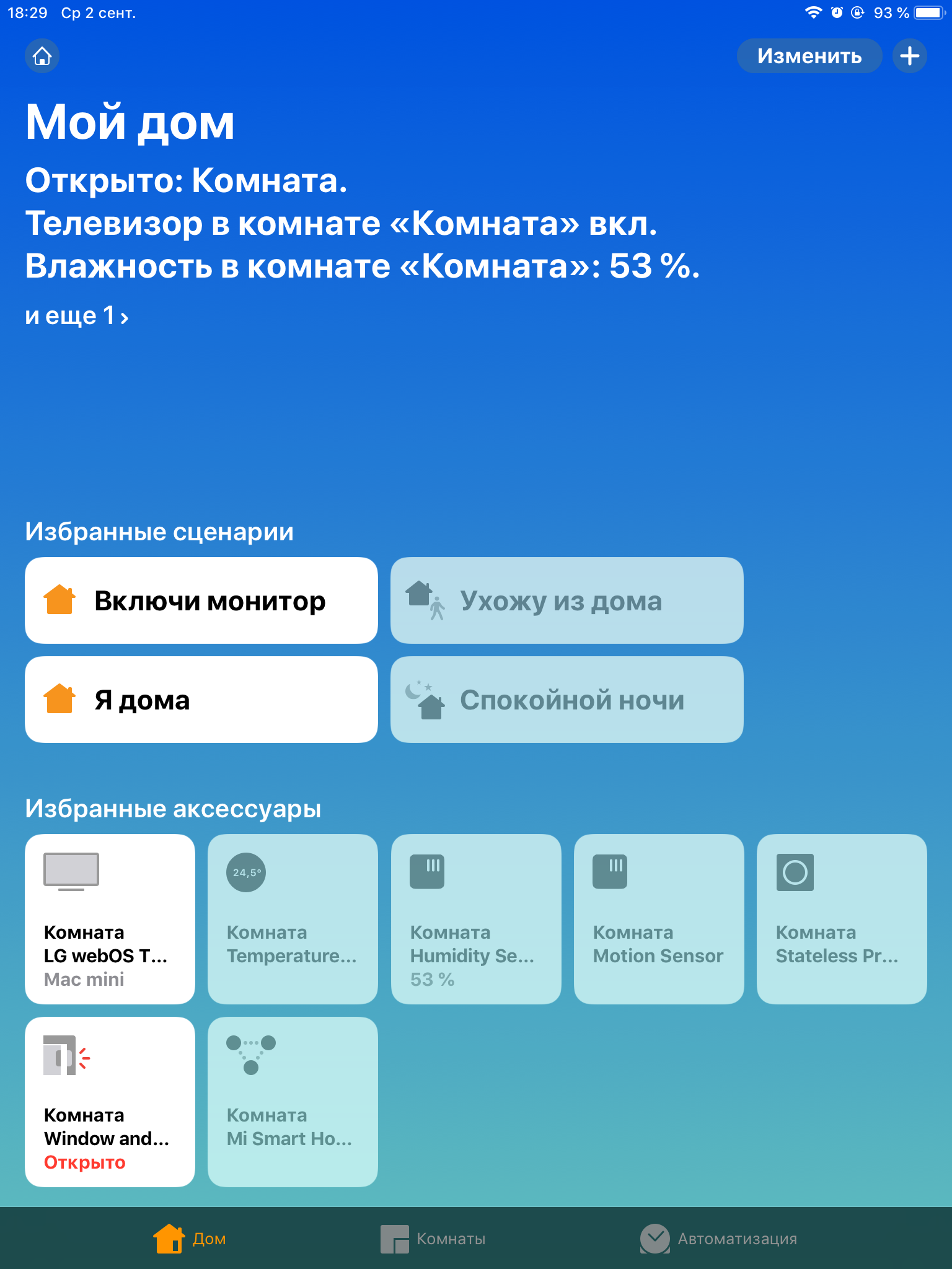 Только сценарий Включить по приходу домой не хочет, но тут надо разбираться уже в ХоумКит. Места вроде все выставлены.