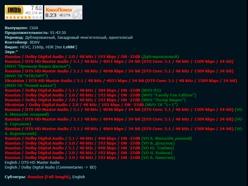 и даже с Атмосом [англоязычнымBobr писал(а):Для Германии этот фильм стоит 22 евро, дополнительно к месячной подписке. Для США 30 баксов.