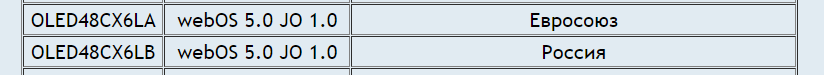 Кстати, в сервисном меню на отметка 1:08 модель обозначена, как OLED48CX6LB, что входит в противоречие с данными по маркировке в таблице