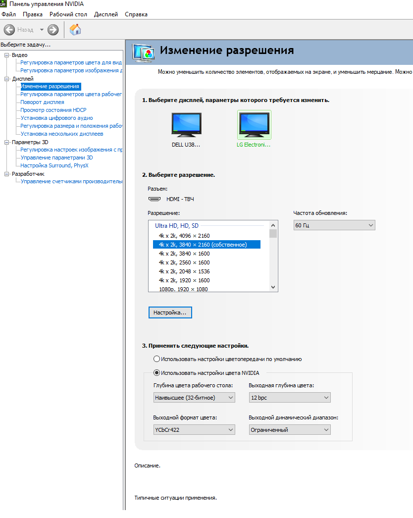 Идеальный дефолтный вариант (включить и забыть) в том числе и для игр: "HDR/2160р/32bit/10bpc/RGB/Полный/60Гц" но таких HDMI кабелей видимо не существует, ввиду ущербности самого HDMI интерфейса, если уж даже кабель за 6 косарей не обеспечивает пропускной способности, поэтому чем-то придётся пожертвовать, либо так "HDR/2160р/32bit/8bpc/RGB/Полный/60Гц" либо так "HDR/2160р/32bit/10bpc/RGB/Ограниченный/60Гц"