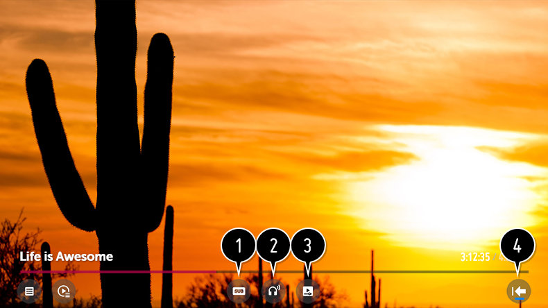 Почему было не сделать в проигрыватели быстрое переключение звуковой дорожки и субтитров цветным кнопками (красной, жёлтой, зелёной)? Почему они никак не задействованы? Зачем вообще было делать переход по голубой кнопке для доступа к ним? Не проще было вынести соответствующие пиктограммы в правый верхний угол (подчёркнутые должным цветом), как это сделано в LG Channels? А вместо крайней пиктограммы с троеточием (тот самый переход) поставить "возобновление воспроизведения".