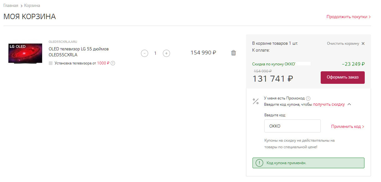 Да смысл в этих кодах, когда у официалов изначально цена НЕАДЕКВАТНАЯ. Весь янедкс маркет oled65cх продает по 150к. У LG он 220к..