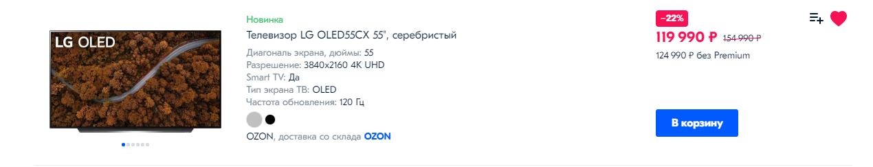 У Озона 55CX сравнялся с ценой у автора александр891 @ Новые телевизоры LG со скидкой от официального магазина LG, плюс бесплатно в регион доставят, и можно спасибкам от Сбера платить