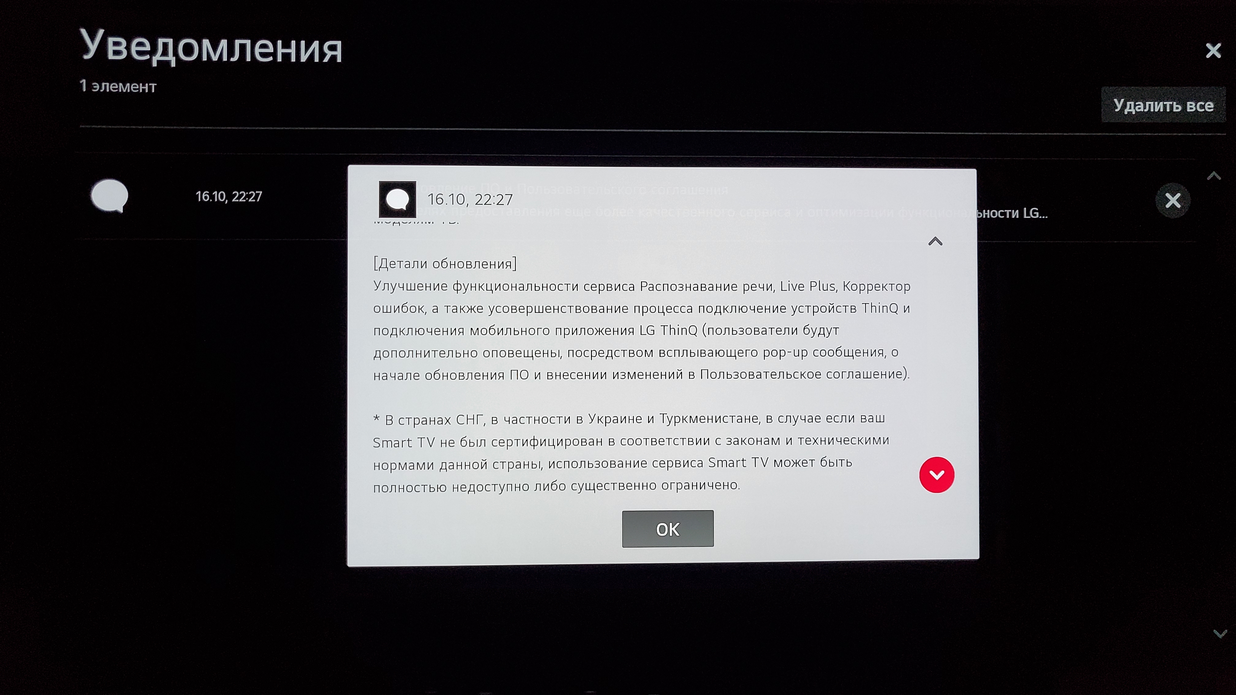 Страна обслуживания LG ТВ: Украина