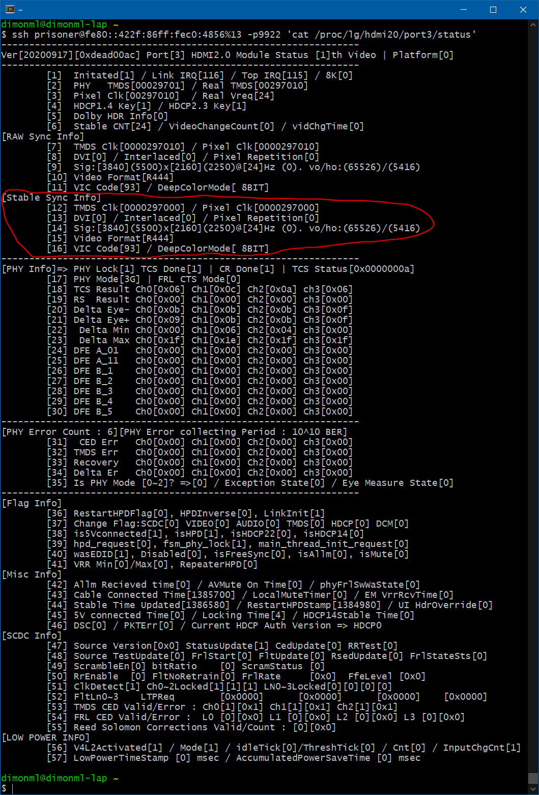 $ ssh prisoner@fe80::422f:86ff:fec0:4856%13 -p9922 'cat /proc/lg/hdmi20/port3/status'Вернуться в Телевизоры LG - Помощь