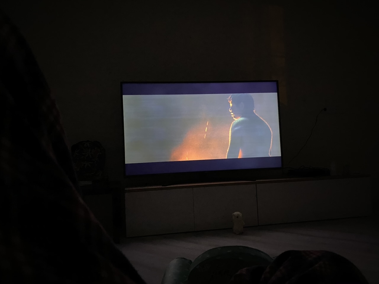OLED тут не нужен, явно бюджет не тот. Вон на нижнем скрине чёрные полосы сверху и снизу изображения вполне себе тёмные, значит дело просто в настройках картинки. Их и крутить, пока не станет приятно глазу.