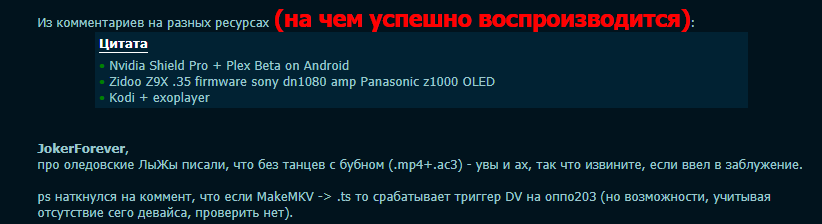 john Так там в раздаче mp4 DV 7 профиль, толку в этой ссылке, таких раздач на Кинозале пруд пруди. А на птицу вход заказан простым смертным, оттуда так просто релизы не потаскаешь.