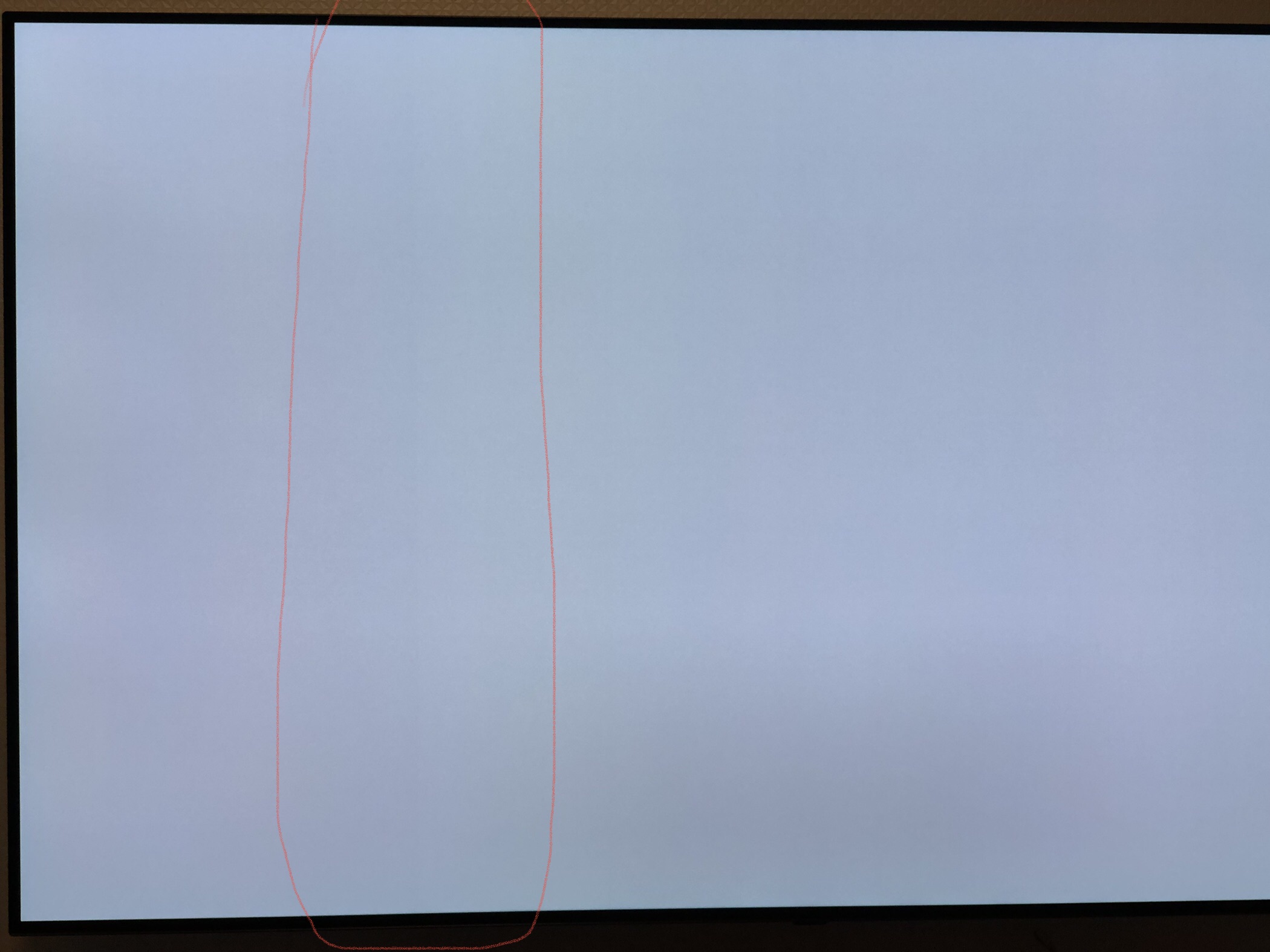 Здравствуйте! Погонял 5 дней новенький oled65cxr и заметил на белом фоне, с левой стороны полосу. Заметен переход от серого к белому. На сколько это критично? И что с этим делать? На 50% заливке серого видно прям заметно, соевой стороны от края полоса имеет оттенок темнее.