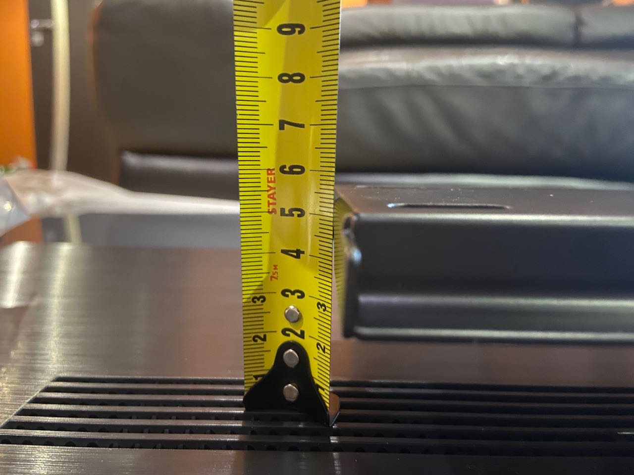 Попробовал два крайних положения отверстий для крепления к ТВ, в итоге выбрал крайний верхний - когда крепежная планка находится ближе всего к центру ТВ. На фото оба крайних варианта, можно и ниже, но тогда края кронштена будут торчать из под ТВ. Когда будете вешать надо иметь в виду, что делать это удобнее при полностью выдвинутой регулировке наклона, нижний край кронштейна при этом будет упираться в стену следите чтобы не царапнуть обои, места между стеной и панелью мало, но вполне достаточно чтобы вдвоем повесить без особых проблем.