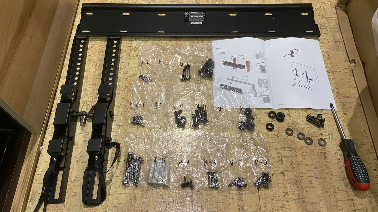 В комплекте были все возможные и невозможные варианты крепежей - дюбеля, разные болты, шайбы, пластиковые проставки. Того что было в комплекте хватило чтобы повесить LG CX 65 дюймов. Но я решил вместо штатных дюбелей вешать на стальные 10 анкера - вкручивал в бетон.