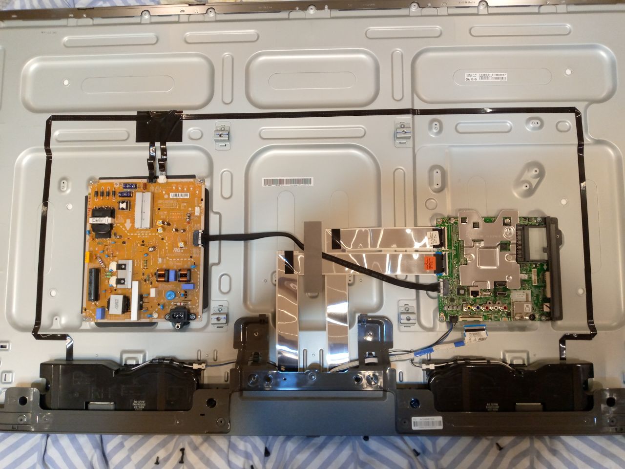 Как решил проблему. (Спасибо форуму). Снял крышку телевизора. Сбоку на плате - нашел файфай модуль. Фото прилагаю. К плате маленький коротенький проводок. Снял этот модуль - сдул пыль, протер тряпочкой. Провод повернул на 180 градусов. Всё собрал в обратном порядке. Также немного разогнул с двух сторон Шлейф, который идёт на матрицу (на всякий случай). Со стороны платы передёрнул шлейф. Сверху не понял как это делается, но чуть пошевелил. Собрал обратно телевизор обратно.