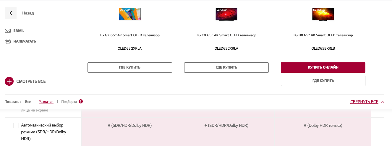В модели которую я выбрал 65BX: Автоматический выбор режима (Dolby HDR только). Она стоит на 18 тысяч дешевле.
