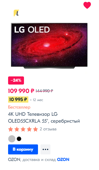 Ну что поделать, раз не следите (с 19-го вывесил на 65" эту цену на Озоне) narpol @ Телевизор LG OLED CX (48,55,65,77") 2020 года