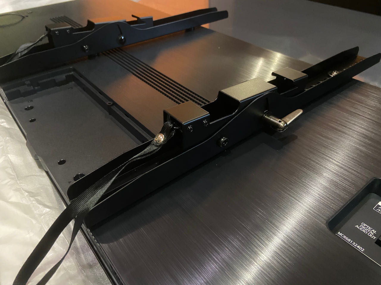 Кабели подключал на висящем ТВ, лучше, конечно, все подключить до навешивания на рамку, если Вам так удобнее. Фиксирующие панель собачки открываются при помощи лямочки на каждом из элементов кронштейна. Висит надежно. Рекомендую!