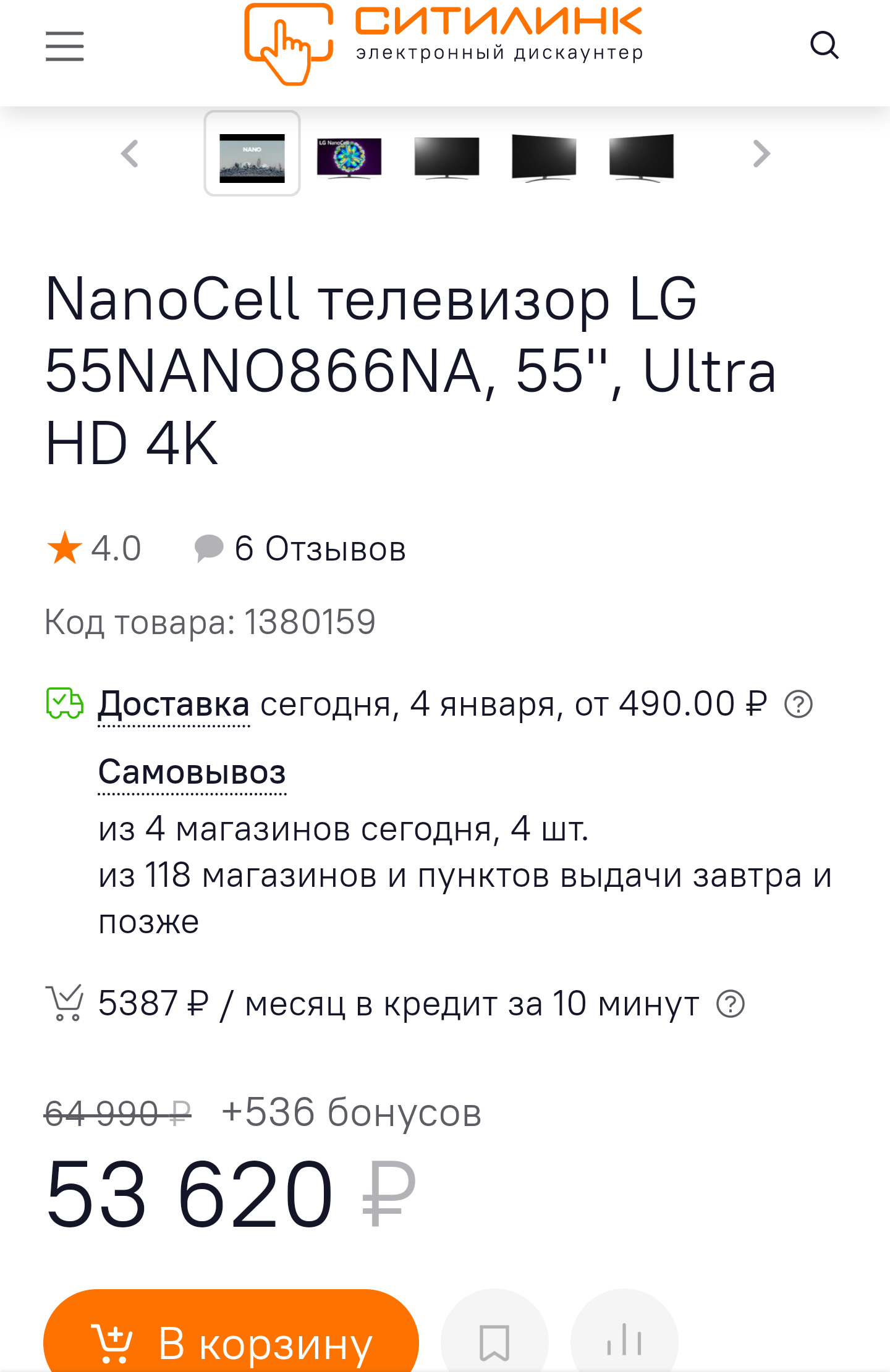 В Ситилинке телевизор LG 55NANO866NA 55" за 53620?: https://www.citilink.ru/catalog/audio_a ... v/1380159/