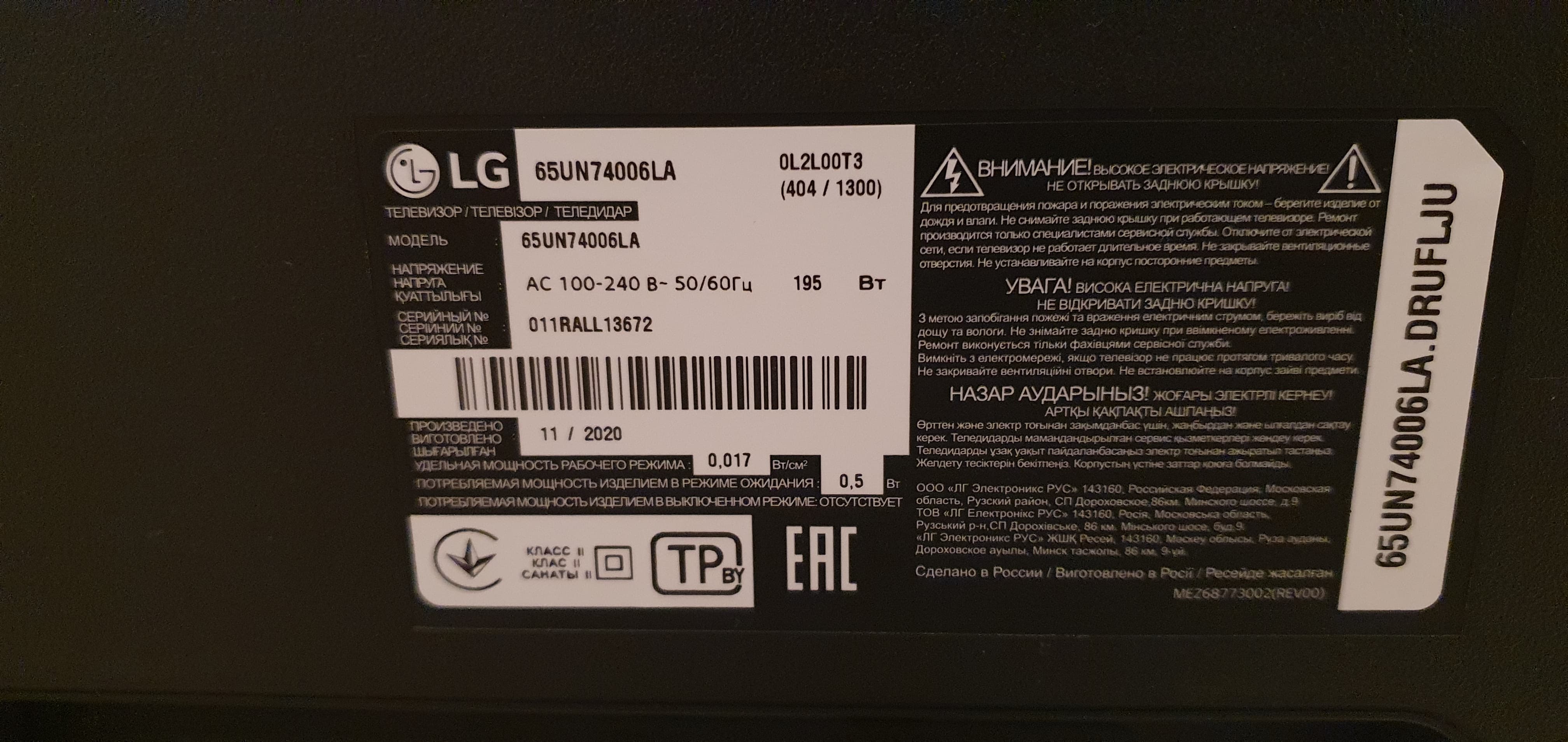 Вывод: отличный при свете, ужасный в темноте. 65 Диагональ для 3 метров много, в динамике голова кругом.