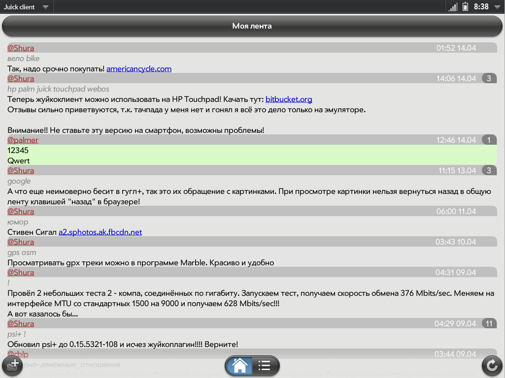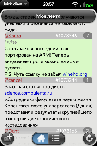 Клиент Juick Client для webOS поддерживает следующие возможности: