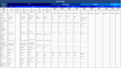 Таблица из narpol @ Телевизоры LG 2021 модельного года снова претерпела изменения