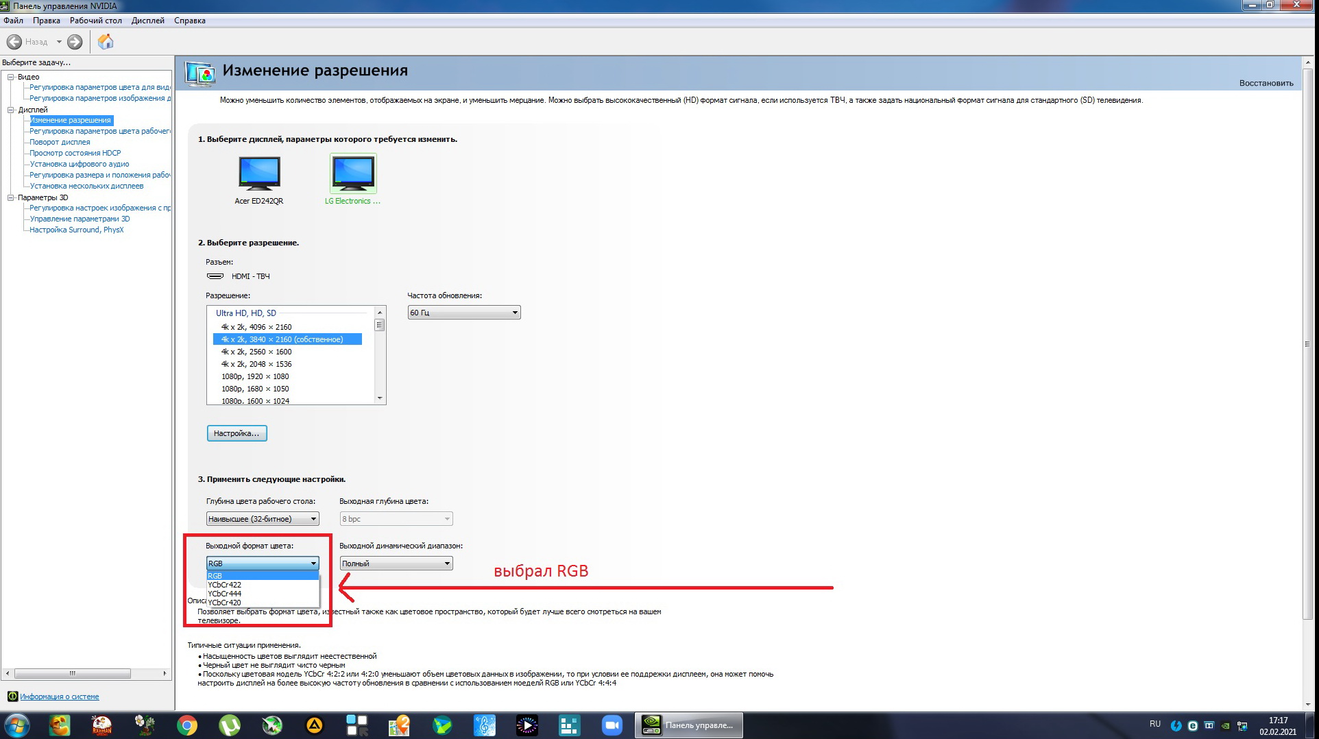 Всем привет. Месяц как владею 55nano866na, всем доволен, изображение настроил на свой вкус, засветы по минимуму. Всё устраивает. Подключил тв к пк по hdmi. На пк система семерка 64 бита, выставил в настройках приоритета по дисплеям "РАСШИРИТЬ ДИСПЛЕИ". Кабель ugreen версии 2.0. На видеокарте Palit GTX1660Ti порт hdmi версия 2.0. Драйвера на видеокарте новые. Пробовал подключать тв к пк через разные порты, итог один, экран тв приобретает зелёные оттенки, до этого был кабель 1.4 версии ноунейм, тоже самое было. Пробовал в настройках пк менять герцовку, и на 60 и на 120 такая же беда. Кто сталкивался с таким? Хочу добавить, до этого тв был LG47LB675V, и такой зелени не было....