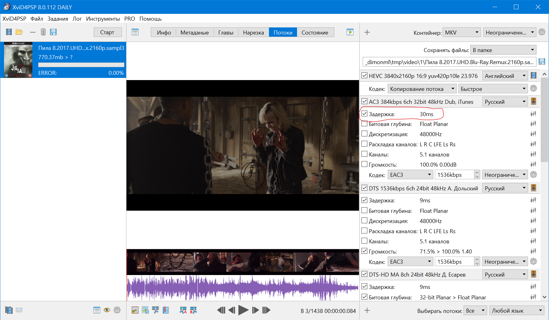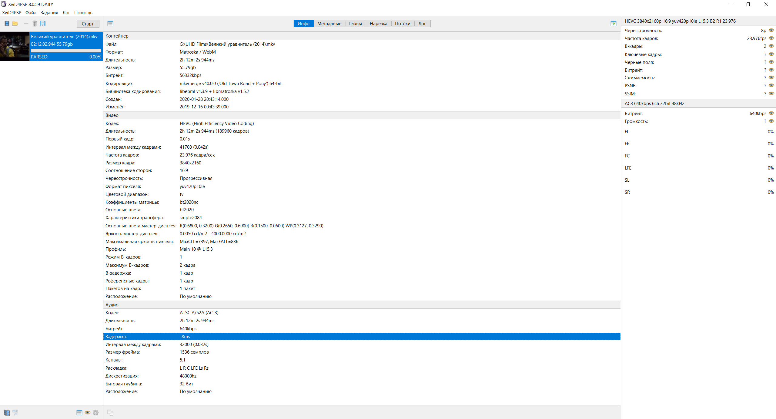 amangra писал(а):Если бы ее не было, был бы рассинхрон видео и аудио на 8 ms (в данном примере). Это значение вам и нужно будет при пересборке.