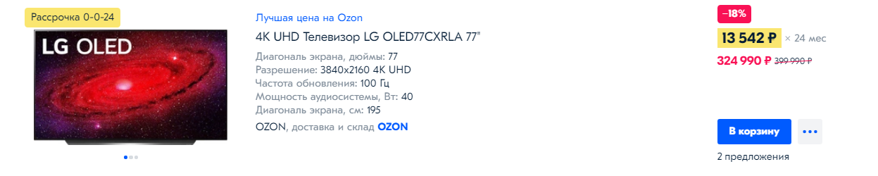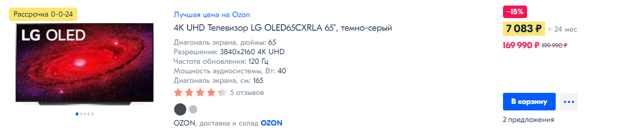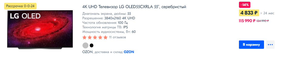 Телевизор LGOLED48CXRLA 97 000 руб.