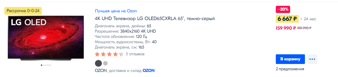 Для варианта со скидкой и рассрочкой narpol @ Телевизор LG OLED CX (48,55,65,77") 2020 года Озон еще подопустил цены (изменения только для 55" и 65" моделей)