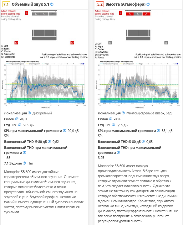 Monoprice SB-600 - это универсальная установка 5.1.2 с довольно простой конструкцией. Он поддерживает контент Dolby Atmos и оснащен сателлитными динамиками, которые помогают создать захватывающий объемный звук. В стандартной комплектации он имеет теплый звуковой профиль с некоторой дополнительной стрелкой в ??диапазоне низких частот, хотя у него есть настройки низких и высоких частот, которые позволяют вам настроить его звуковой профиль. Хотя в нем есть некоторые функции улучшения звука, такие как улучшение диалогов и предустановки эквалайзера, в нем отсутствует функция коррекции комнаты. К сожалению, он не поддерживает контент DTS-HD MA или DTS, который часто встречается на дисках Blu-ray.