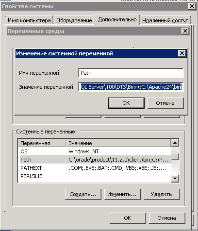 Добавим в переменную path ссылку на Apache24
