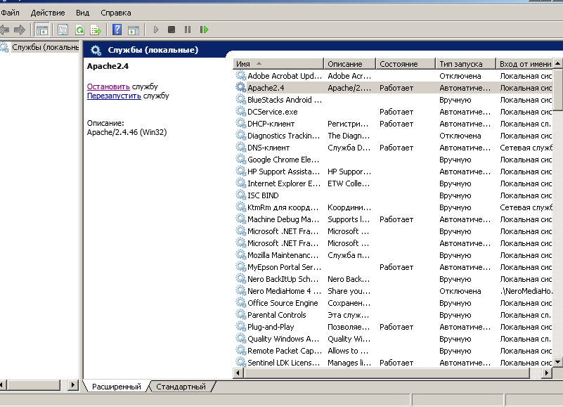 Запуск службы Apache24